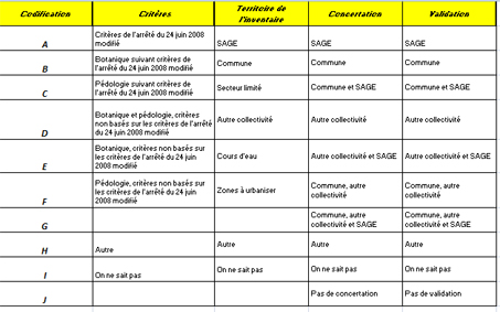 Critère(s) utilisé(s), structure(s) en charge de la réalisation, concertation et validation de l'inventaire